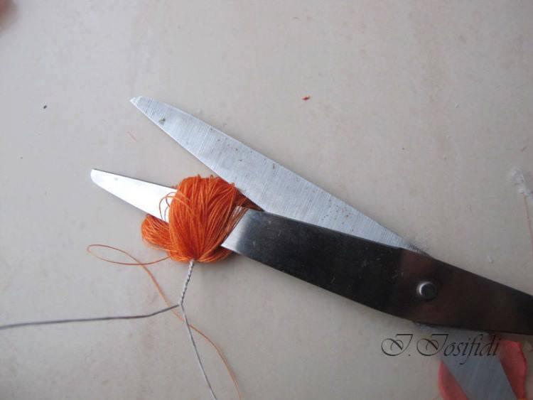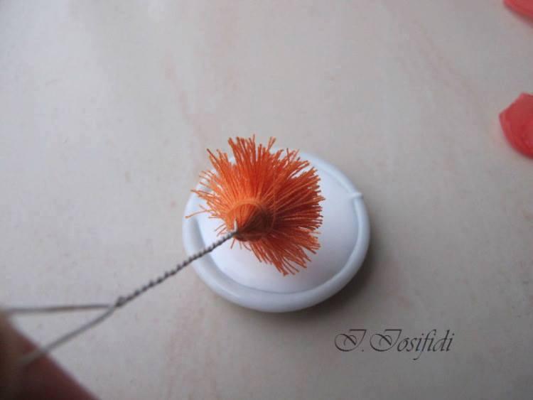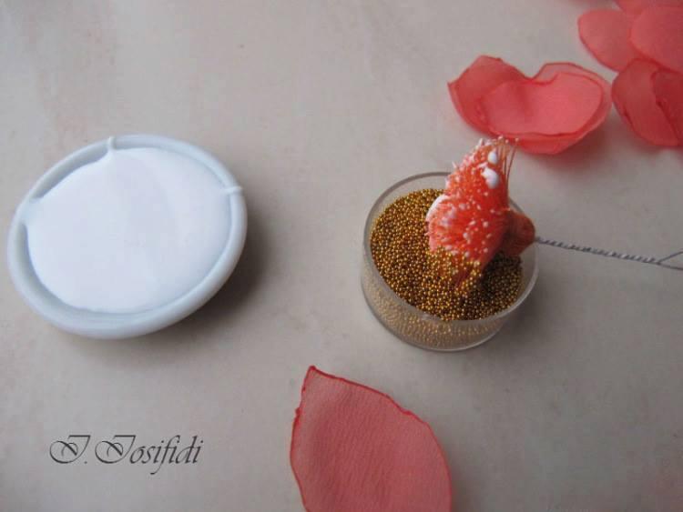 Sellamos todos los pétalos con el fuego y elaboramos el centro de la rosa de hilos y caviar para uñas.
