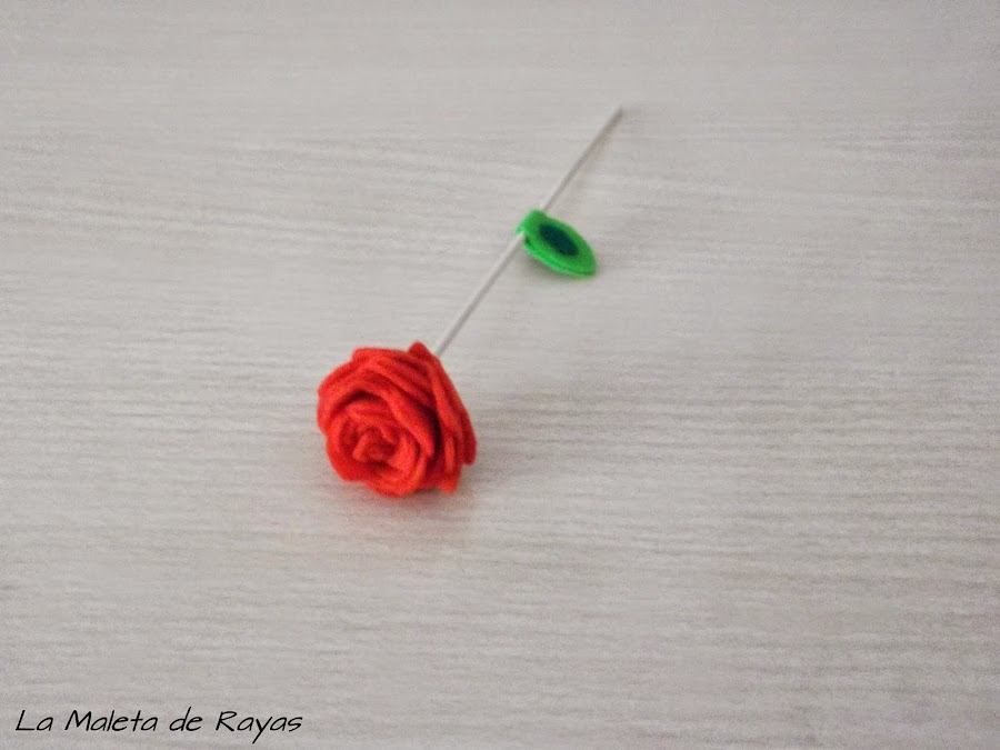 Recortamos el palo según lo queramos de largo y ¡Ya tenemos la rosa acabada!.