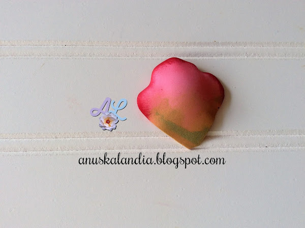 Comenzamos a difuminar los pétalos por la parte superior, como se aprecia en la siguiente foto. Siempre pintar por ambas caras y no olvidar los bordes.
