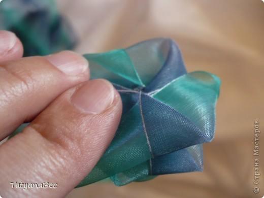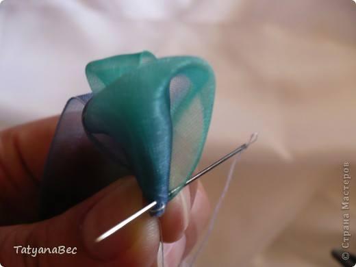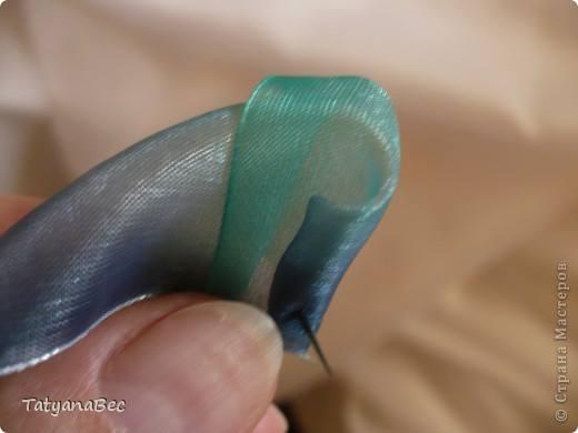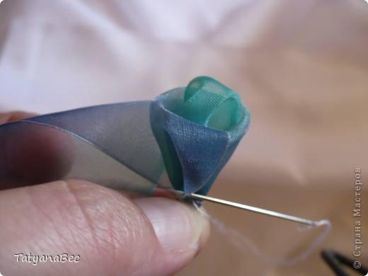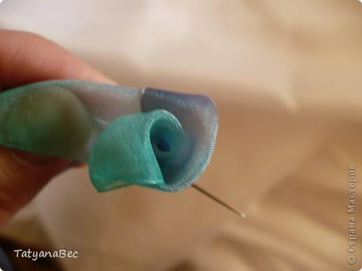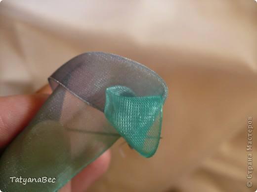 Cada movimiento fijamos con hilo y aguja. En este ejemplo Tatyana enreda y fija la cinta defrente. Pero si desean ver como se realiza la doblez les recomendamos ver este ejemplo.