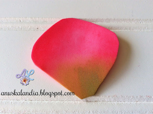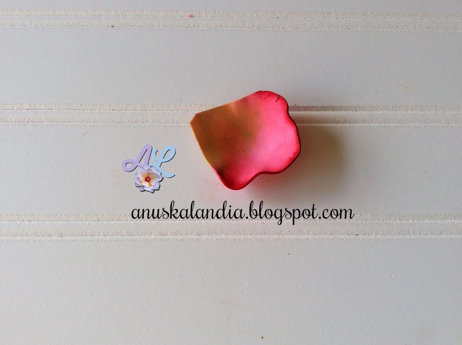 Comenzamos a difuminar los pétalos por la parte superior, como se aprecia en la siguiente foto. Siempre pintar por ambas caras y no olvidar los bordes.