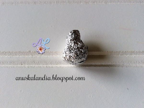 Cogemos nuestro trozo de papel aluminio, no muy grande. Vamos a hacer una especie de forma de gota o lágrima con él.