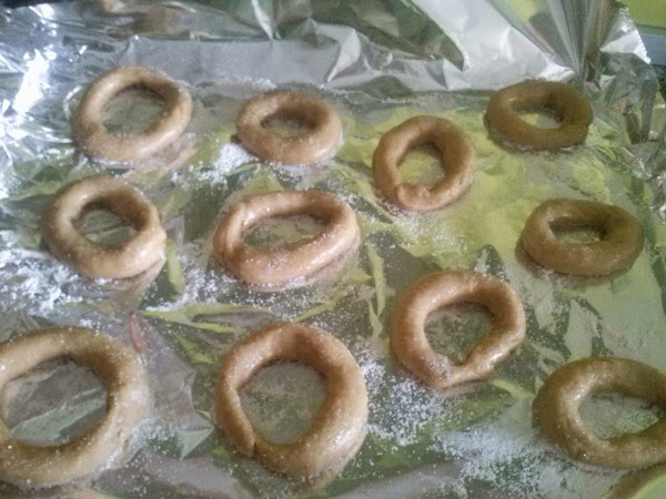 Ponemos los roscos en una bandeja de horno sobre papel de
