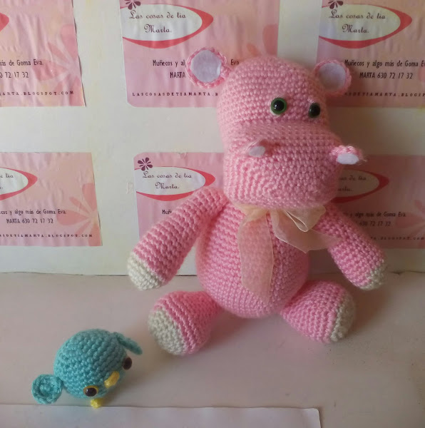 Pues bien, nos hemos juntado un grupo de amigas y guiadas de la mano de Ana de https://anuskalandia.blogspot.com, poco a poco, y siguiendo sus tareas semana a semana ha resultado este hipopótamo tan adorable. Tiene muchos amigos.