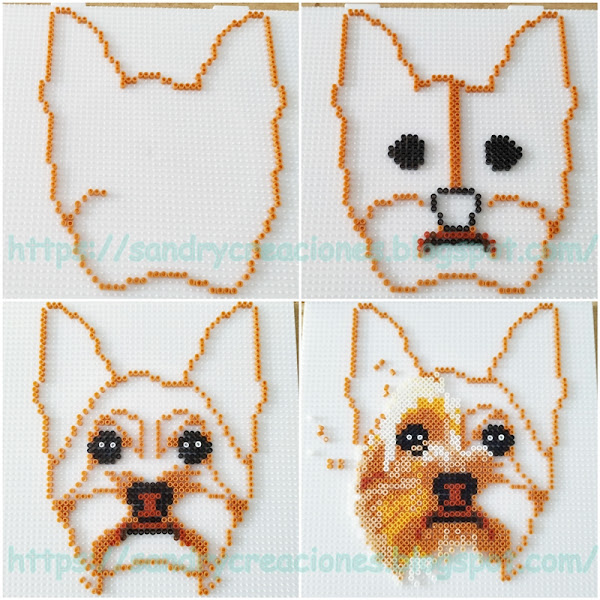 Para realizar el patrón había dos caminos, el fácil y el difícil. El fácil era utilizar el programa BeadTool 4 abrir una foto de un rostro de Yorkshire, dejar que el programa lo cuadriculase y luego hacerle pequeños retoques de colores. El difícil era coger una placa de Hama Beads Mini y muchos colores de Hama Beads Mini y solo con fotografías de referencia de rostros de perros Yorkshires ir creando poco a poco el patrón, como el que empieza a dibujar en un lienzo en blanco. Sabéis que nos encantan los retos así que cogimos el camino difícil , vamos a mostraros como lo fuimos realizando y esperamos que os guste el paso a paso que os dejamos a continuación.