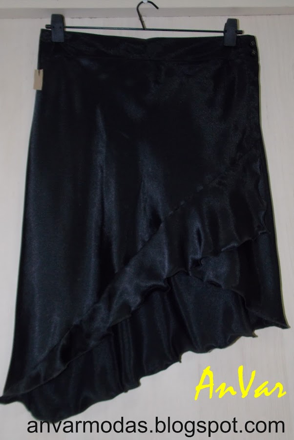 ...o una puntada sumamente corta con lo que logramos un cordón continuo de hilo y más armado en el acabado como la falda negra de satén cristal que viste más arriba.