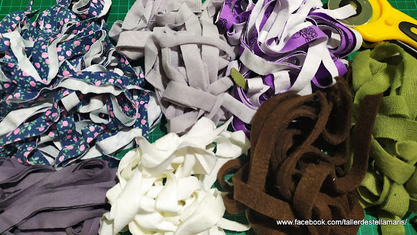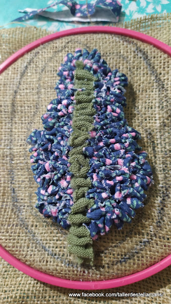 Lo trabajé con tiritas de Telas de punto (de 1 cm de ancho o menos)