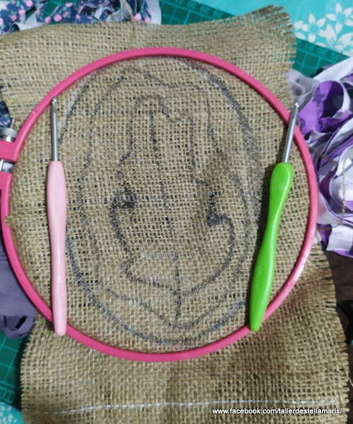 pero aquí, en el Rug Hooking se trabaja a la inversa, desde el frente,