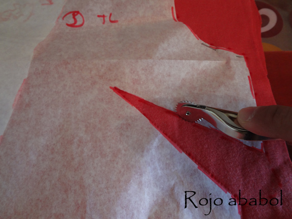 Normalmente cuando pasamos un patrón a la tela solo marcamos con el rotulador o el jaboncillo en una cara de la tela. Para pasar esa marca al otro lado lo que se debería hacer es paras hilos flojos, una tarea larga y aburrida además de que a mi luego los hilos se me van perdiendo...La ruleta de marcar nos evita este paso.