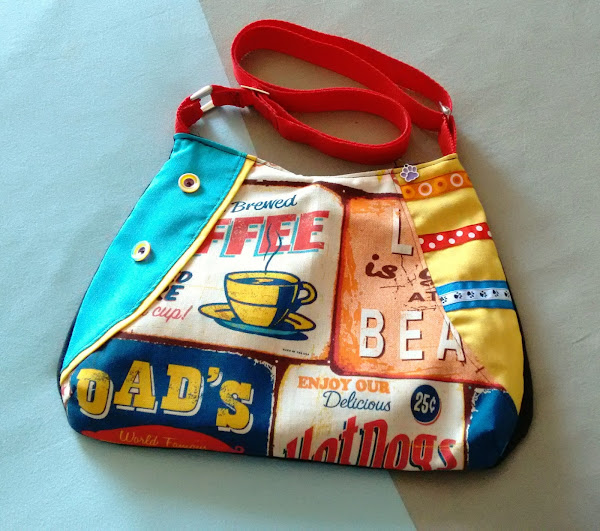 Aprovechando una loneta de mis compras madrileñas, con un estampado de cartelería "vintage" muy colorido, repetí patrón, el del CC de Rojo Ababol que todas conocéis ¿verdad?