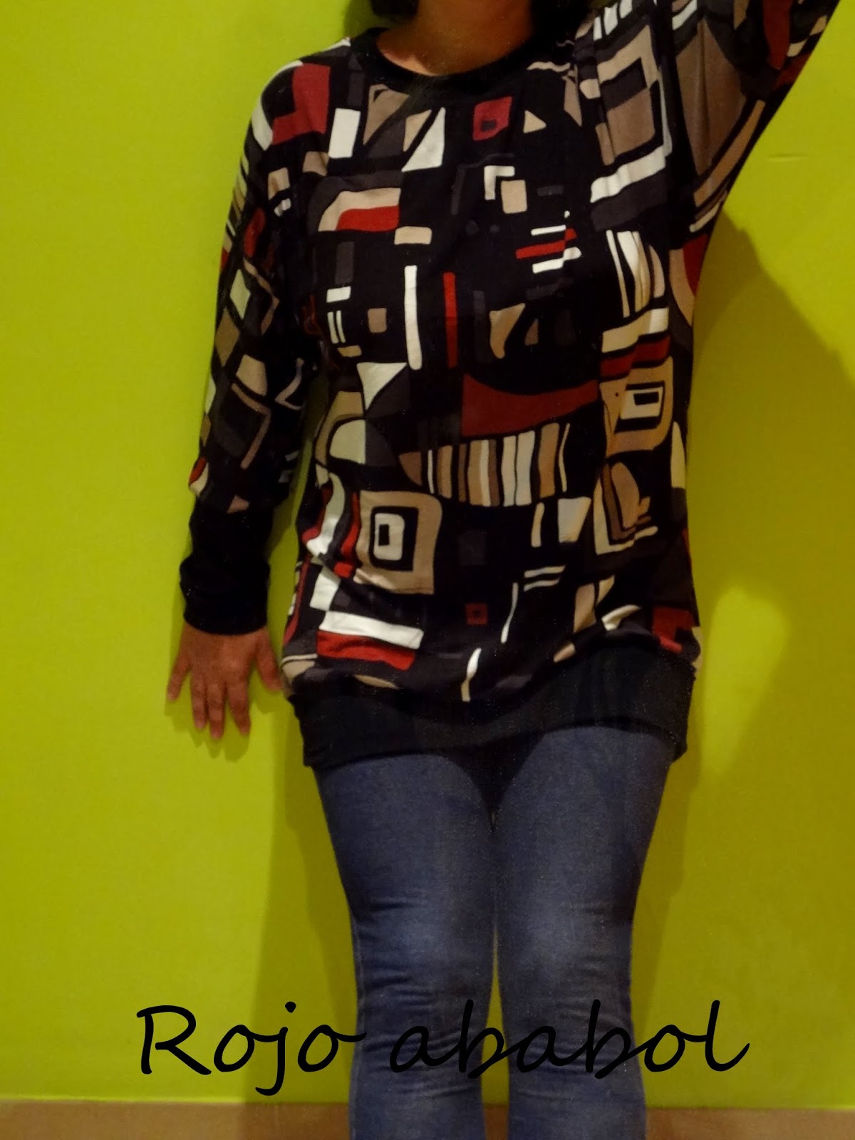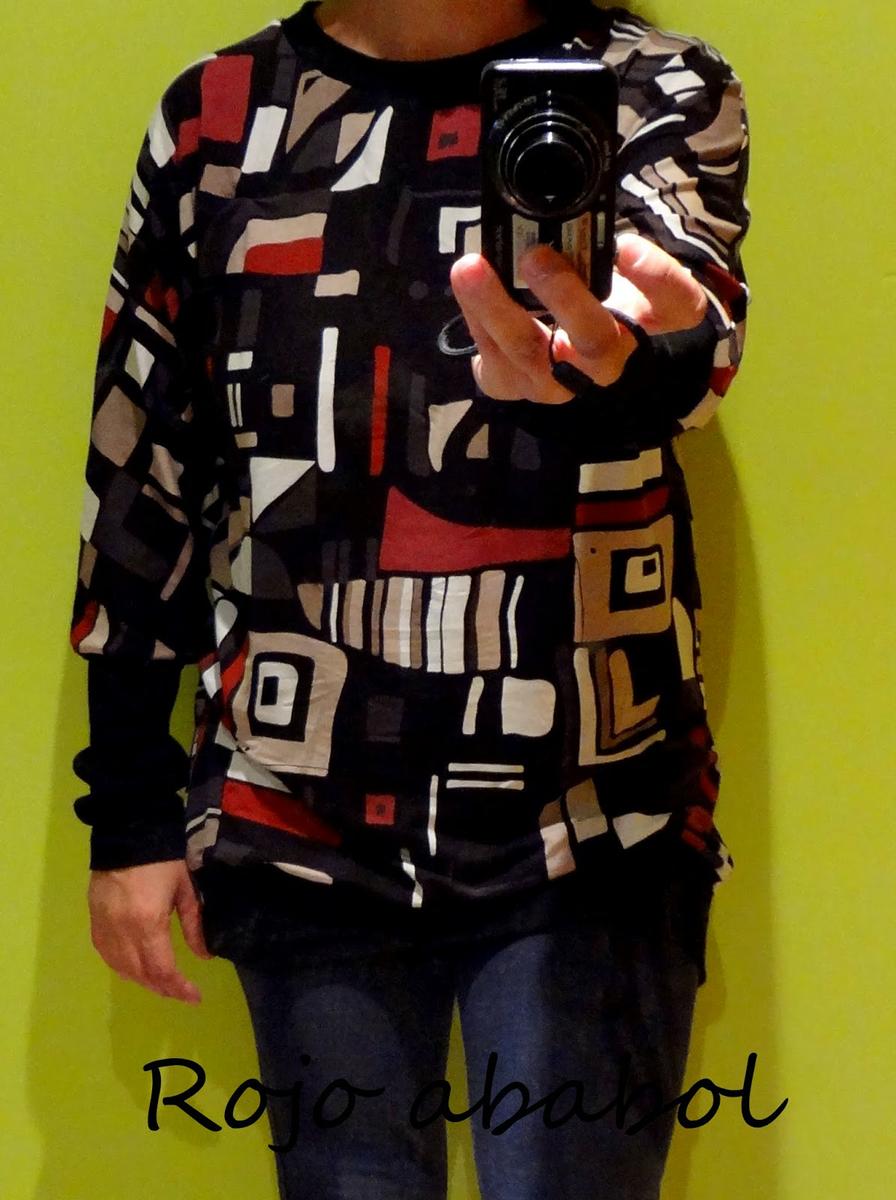 Auto-fotos en el pasillo, un poco de mala luz, pero se deja ver lo cómodo que es el corte de la manga, el largo con puño, perfecto para leggins, y el efecto tan chulo de la manga ajustada.