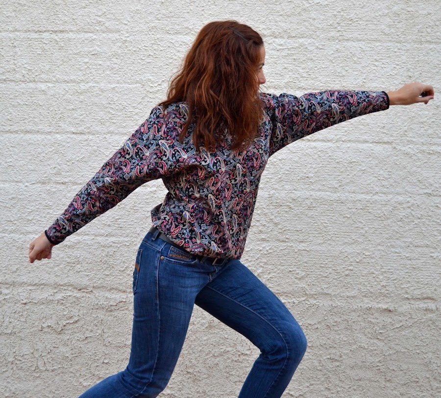 Esta vez a sido fácil, ya que tenía tela suficiente y no he tenido que hacer ningún rompecabezas, he eliminado los puños y el bajo de puño, para crear una camiseta de arregla/pero informal....