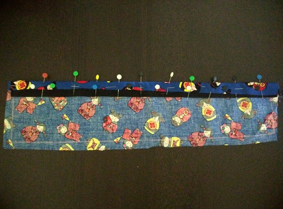 Ahora vamos con las tiras corta dos tiras de 42 centímetros y coloca la tela de esta manera: