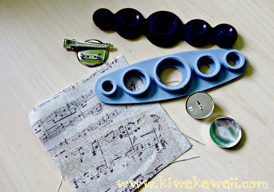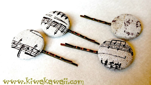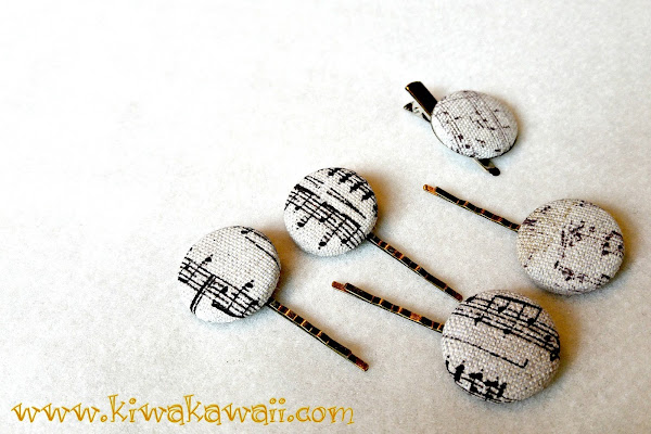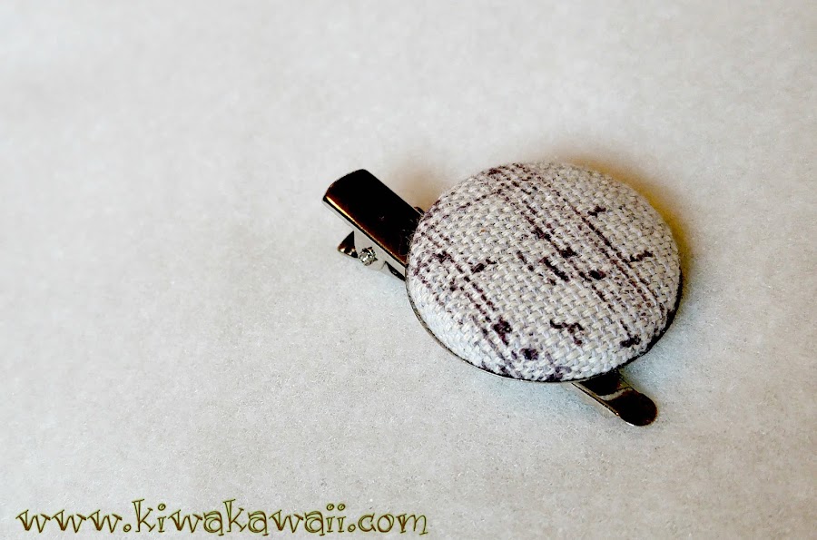 Como parecía que llegaba el calor (ahora parece que ha vuelto el invierno, cachis!), eché mano de los botones para forrar, forré algunos con los retales y los pegué a las bases con cola caliente. ¡Ya tengo horquillas para recogerme el flequillo este verano!