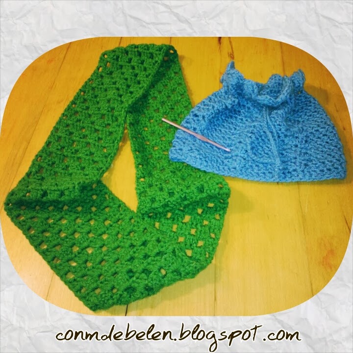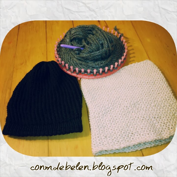 Un gorro y un cuello y algo mas que aun no se que será, con telar redondo, un gran descubrimiento, en un par de horas tienes terminado cualquier proyecto sencillo.