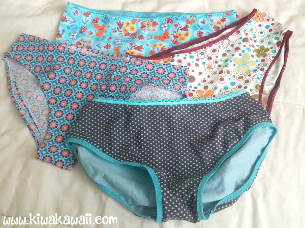 Cuatro braguitas, todas ellas distintas! He aprovechado la ocasión para experimentar distintos acabados, que así, si sale mal, lo único que se pierde es un retalito y un ratito de costura.
