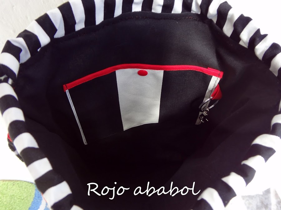El bolsillo exterior forrado en ditte negra, me encanta que quede así de limpio y curioso el interior del bolsillo, además cuesta casi lo mismo que dejarlo sin forrar ;)