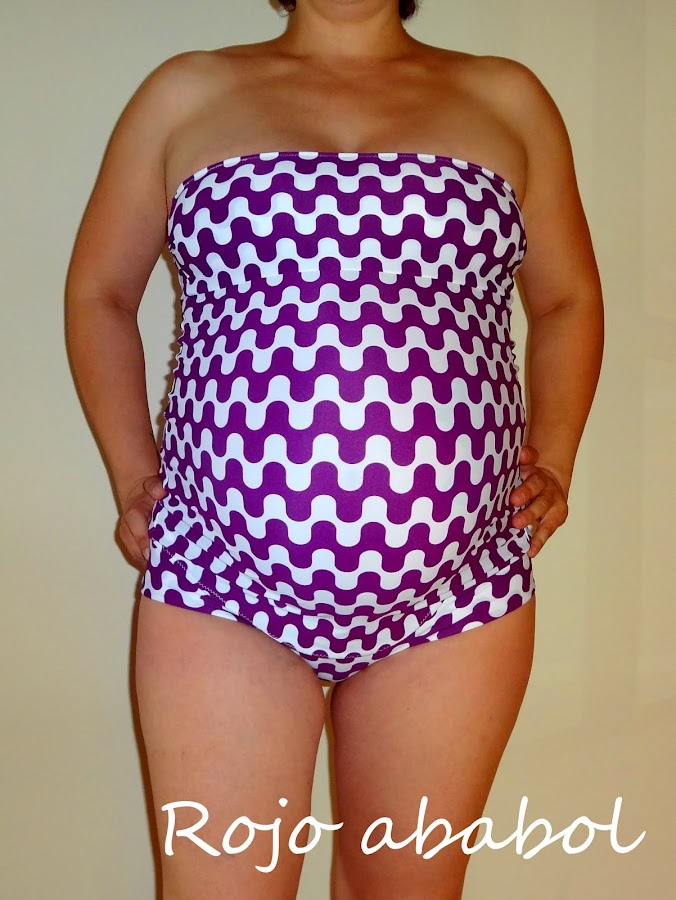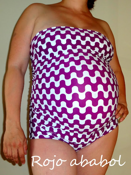 La historia es que fuimos el otro día a la piscina y me encontré con que me pegaba el sol de lo lindo en la barriga....no me emocionó nada la idea y decidí hacerme un bañador en dos piezas que además usaré el resto del verano cuando haya nacido el gusanito.