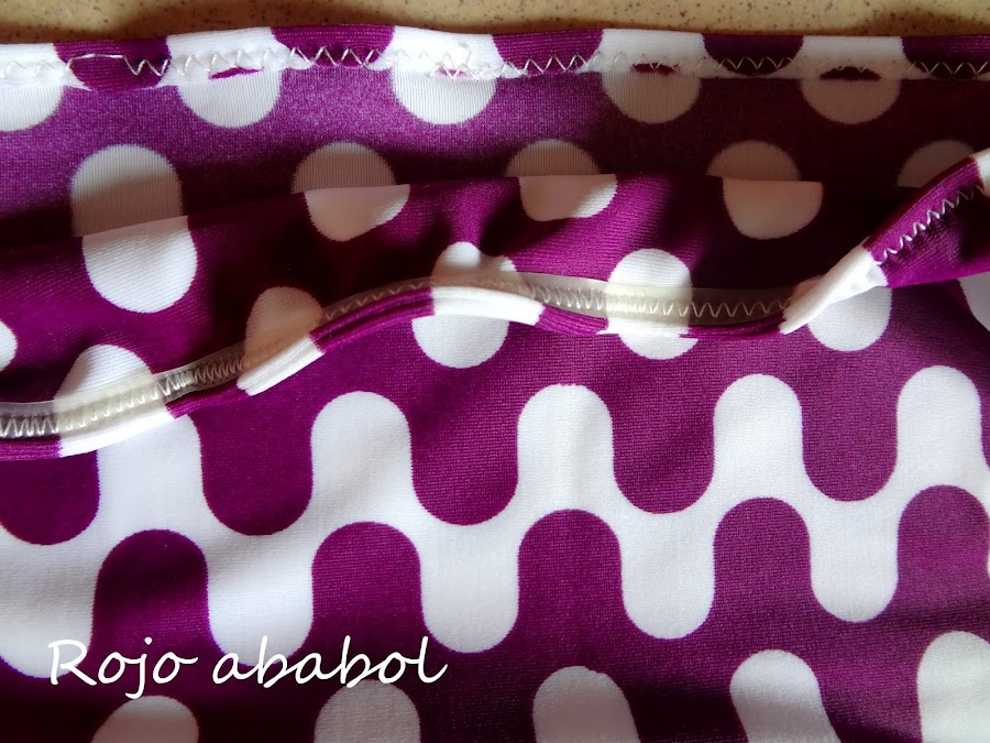 Doble capa de lycra para evitar forro (que no tengo) y puntada decorativa en la cintura para además sujetar las dos telas.
