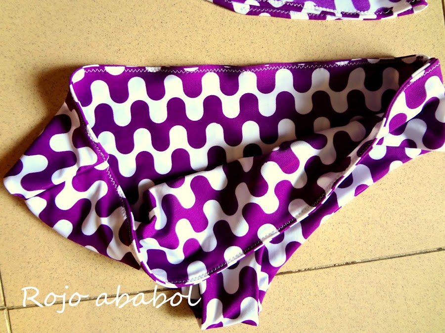 Para la braguita seguí como base el patrón de braguitas retro de Pandielleando que también cosí aquí y aquí. Escoté un poco más en el culete y en la pierna para dar más efecto biquini y me ha gustado tanto que creo que me voy a coser braguitas con esta nueva forma :)