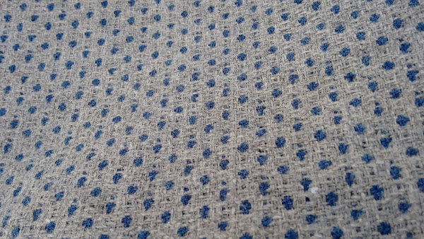 Ya que estábamos hablando del Poche Carola, Mar de "Trae Tela" se ofreció generosamente (gracias otra vez, Mar!) a regalarme la tela que yo escogiera de entre las maravillas que tiene en su tienda... y a mí, que me gustan los retos, me llamó la atención ésta: una lana de topitos en gris y marino, de doble cara (creo que es porque visto de lejos parece tela vaquera... aunque de cerca es una verdadera preciosidad y un tejido suuuuuper suave y amoroso, me encanta!). Pense que me iba a dar cierta guerra pero lo cierto es que es una maravilla al coser, sólo lo entretelé para darle algo de rigidez y a la máquina!