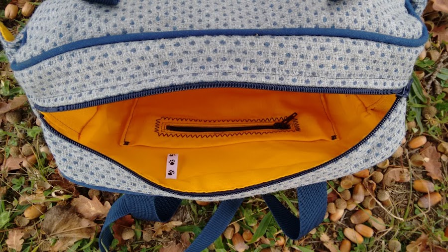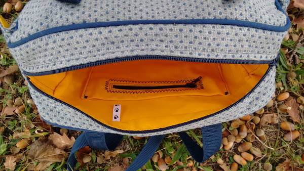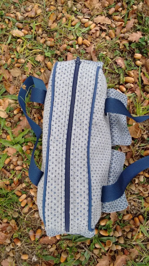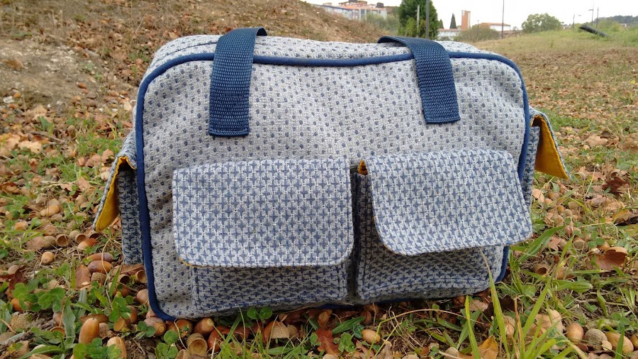 Yo cosí la versión pequeña (31 ancho x 22 alto x 10 cm. de fondo) y la única modificación sobre el original fue eliminar unas pequeñas trabillas que trae en las solapas de los bolsillos exteriores y alargar unos centímetros las asas por preferencia particular.