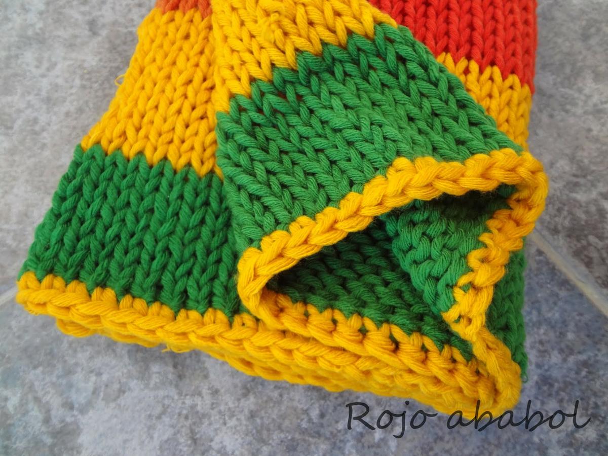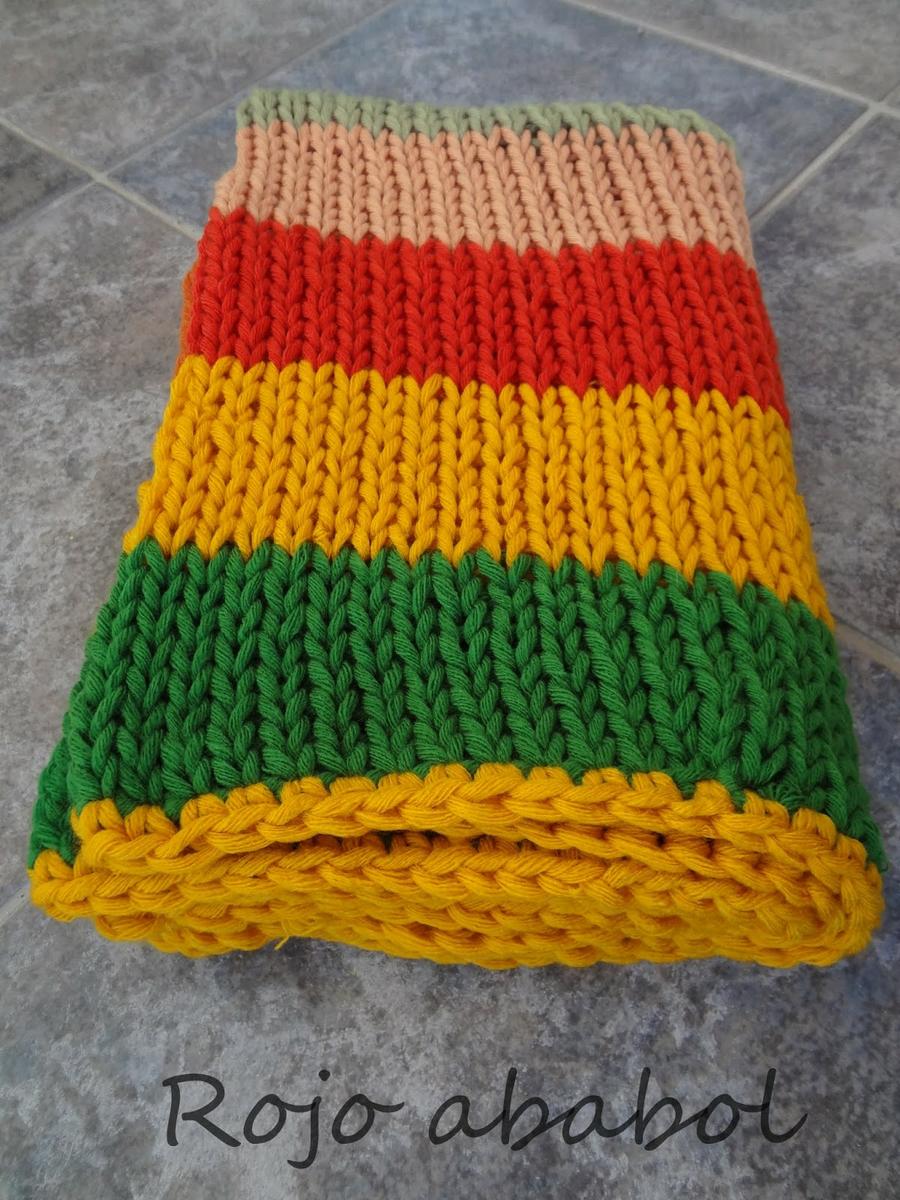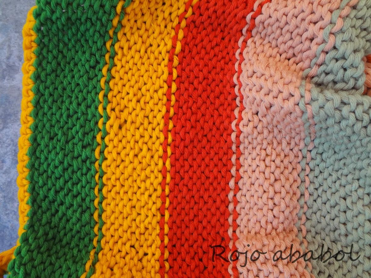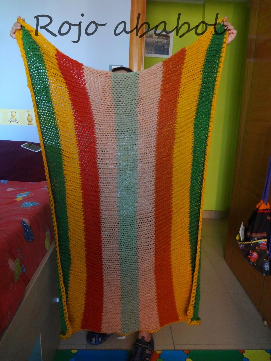 No tengo muy claro como llamarla... retro, rallada, horterilla, .... jajaja. La cuestión es que elegí unos colores que me encantaron y me parece que combinan genial, pero que cuando la vio mi marido la bautizó como "manta fumeta a lo Bob Marley"... sin comentarios...