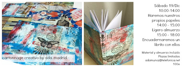 Por la mañana aprenderás técnicas de collage, mix media, decoupage, composición, etc.... y aprenderás divirtiendote y pasando un sábado maravilloso creando y diseñando. Te enseñare trucos para que el resultado que desees te salga. Y por la tarde utilizaremos esos papeles para hacer un librito con un pre encuadernado y aprenderás todo lo necesario para hacerlos tu luego en casa.