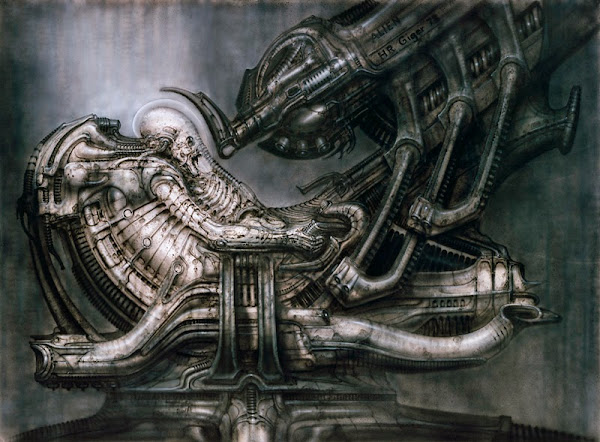 Giger exploró la relación entre el cuerpo humano y la máquina, y creó paisajes oníricos en un estilo que él describió como ?biomecánico, podéis ver más en este video, feliz sábado!!! ;)