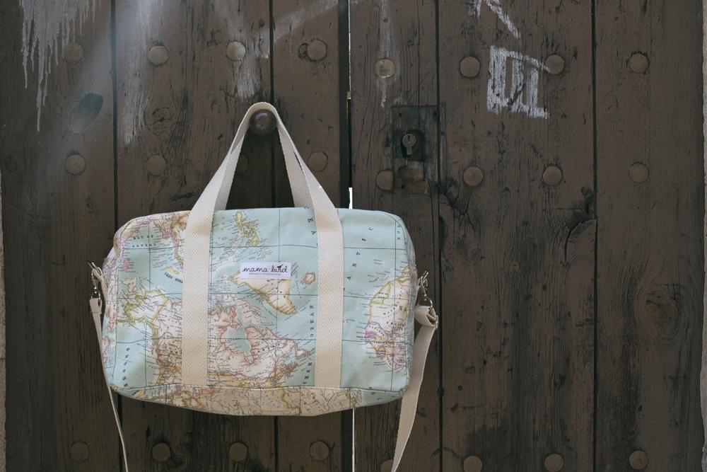 El tema de hoy va de bolsos de viaje, mochilas... todas ellos en la tela mapamundi que ¡tan enamorada me tiene!