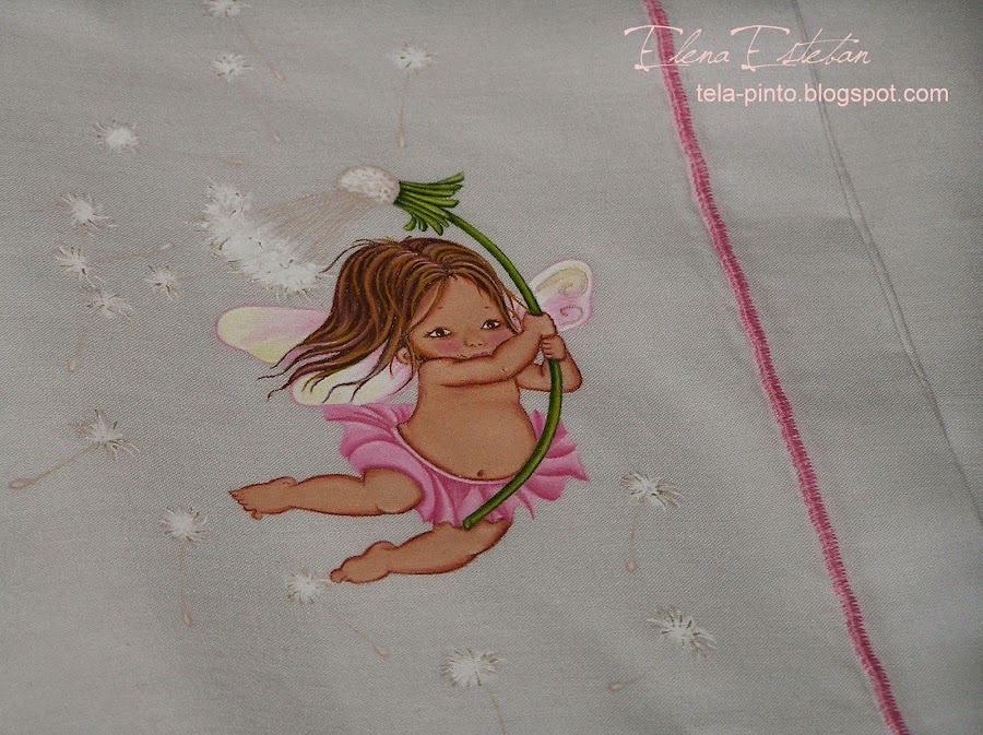 HADAS Y FLORES Lucía ha hecho este año la comunión, y como regalo, recibió este juego de cama personalizado. Sábana para cama de 90 pintada a mano