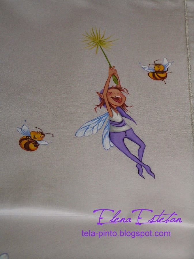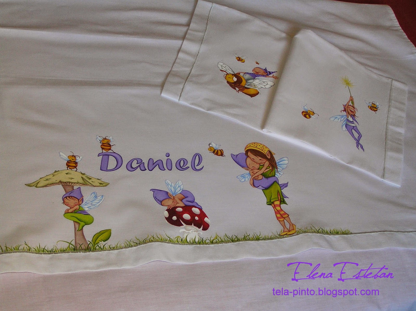 HADAS Y FLORES Lucía ha hecho este año la comunión, y como regalo, recibió este juego de cama personalizado. Sábana para cama de 90 pintada a mano