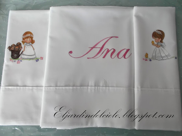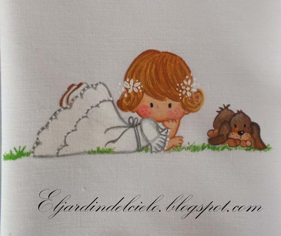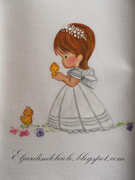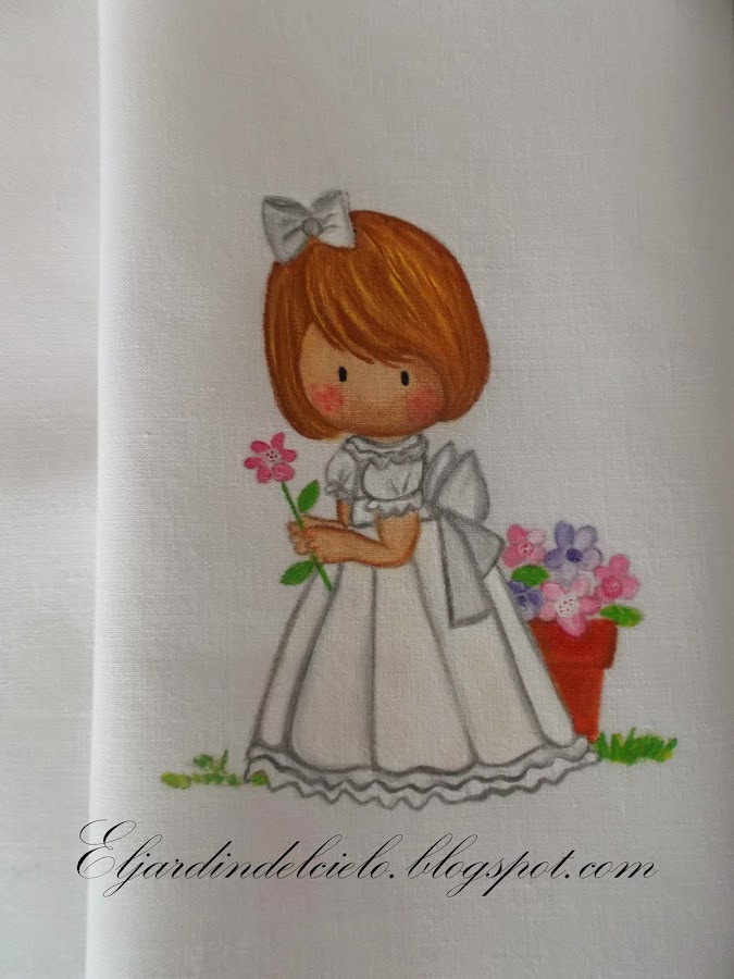 Después de este parón de no pintar nada, empiezo con sábanas de comunión para este año que tengo muchos regalos para hacer.