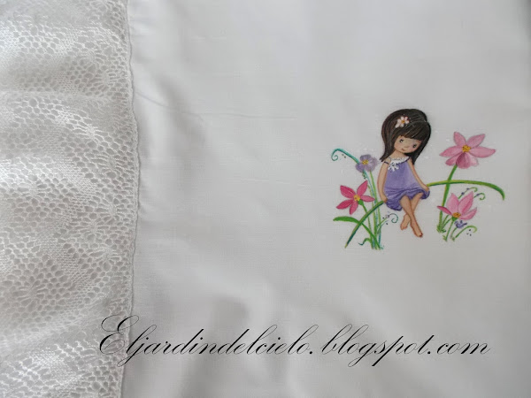 Las puntillas las hizo a mano la bisabuela de Lucía y su abuela las ha cosido a la sábana.