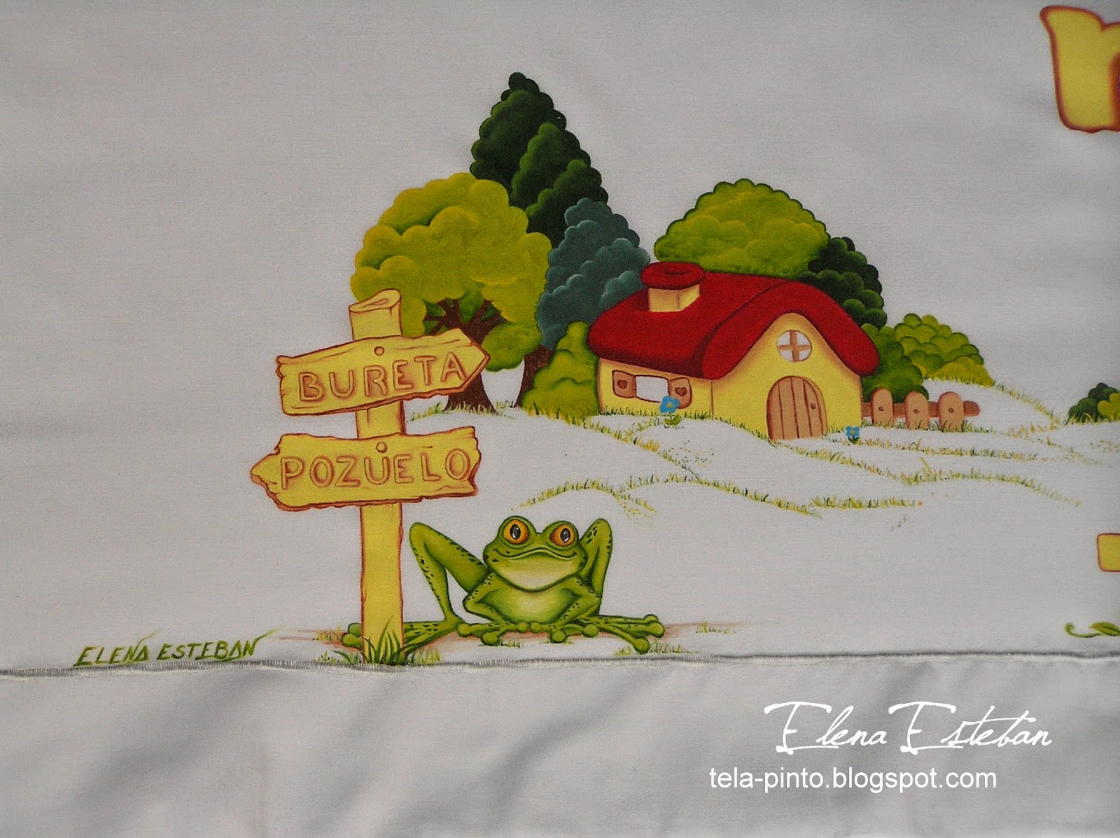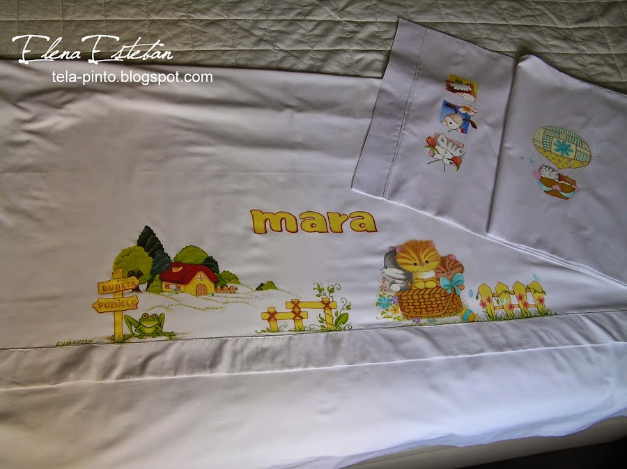 HADAS Y FLORES Lucía ha hecho este año la comunión, y como regalo, recibió este juego de cama personalizado. Sábana para cama de 90 pintada a mano