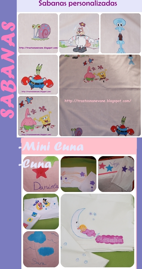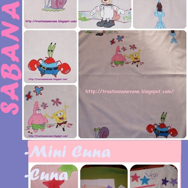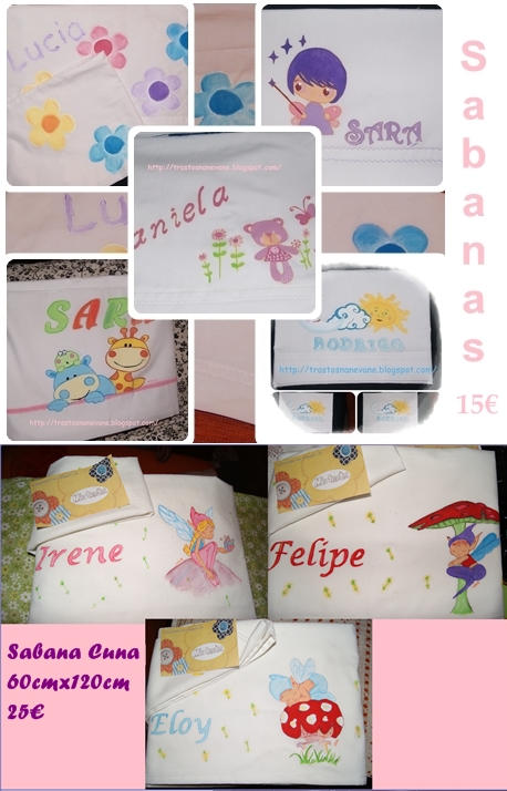 Hola a tod@s, hace mucho que no os ponia nada nuevo asi que aqui os dejo algo de lo ultimo que he hecho Aqui el dibujo un poco mas cerca Es un juego de sabanas de cuna que ya estan con su nueva dueña, espero que la haya gustado el resultado final tanto como a mi.