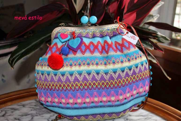 boquilla con bolas turquesas, un piquillo en ese color bordeando el bolso,...