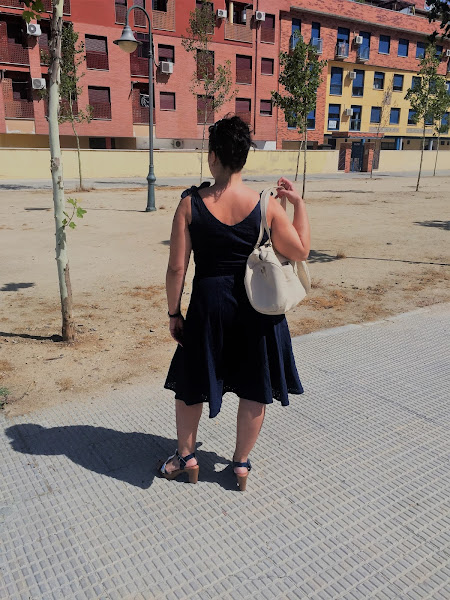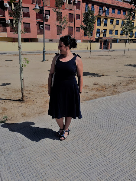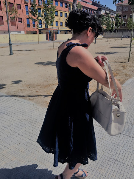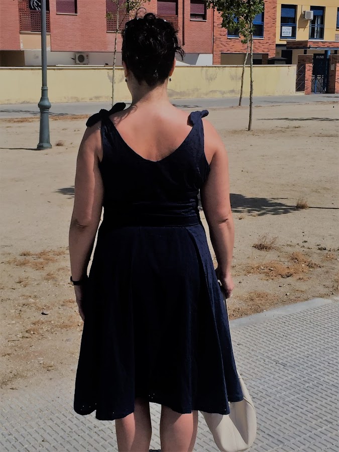 El vestido ya estaría terminado y listo para ponernos, al más puro estilo sabrina, con esos lacitos en los hombros y queda monismo.