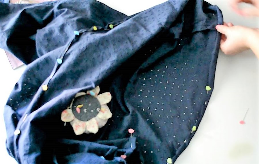 En este punto nos probamos el vestido y vemos por donde queremos el largo del vestido, cogemos la medida con alfileres y luego lo marcamos bien, ponemos alfileres toda la falda y planchamos, para finalmente realizar una costura, podemos hacer una costura con la maquina o a mano con puntada invisible, como más nos guste.