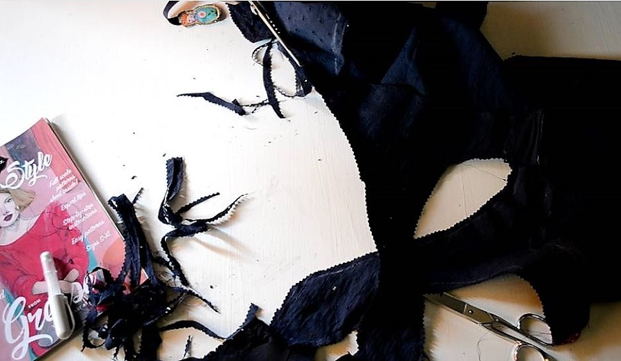 Para comenzar lo primero que cosemos son las pinzas del delantero y espalda y una vez cosidas las pinzas, ponemos las vistas de delantero contra el derecho del delantero y lo cosemos todo el borde de los tirantes, escote y sisas por el revés a la maquina, cortamos con unas tijeras de zig-zag o hacemos piquetes todo lo que hemos cosido, para poder dar la vuelta perfectamente sin que quede tirante o feo. Lo mismo hacemos con la espalda.