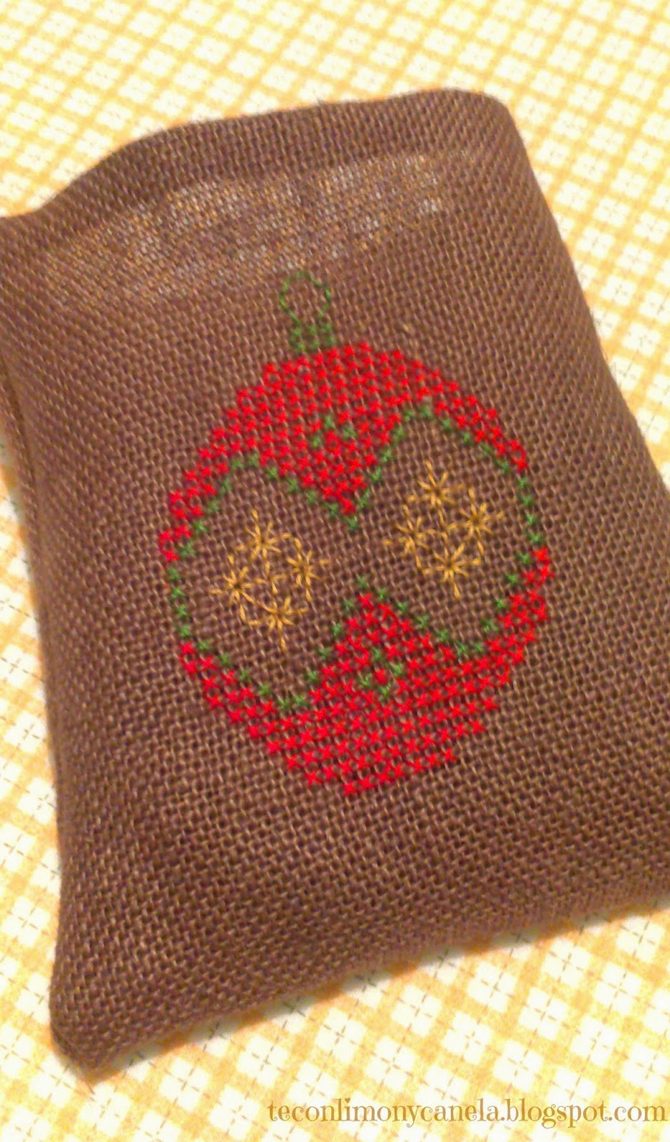 Para hacerlos he contado no sólo con el retal de arpillera (y que en su día ya os conté que había sido el envoltorio de unas hortensias que me regalaron), sino que también he tirado de unas madejitas de hilo de bordar que tienen más de treinta años... Son las que me compró mi abuela cuando me enseñó a bordar, y yo podría tener unos 8 años o así...
