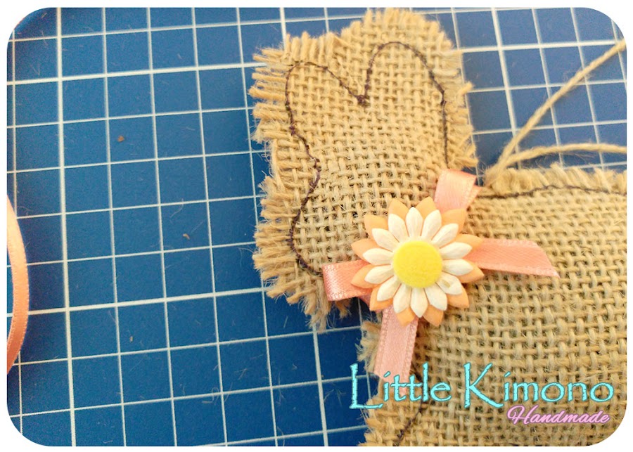 7. Finalmente con la cinta de raso hacemos una lazada en el cuello y decoramos con alguna flor.