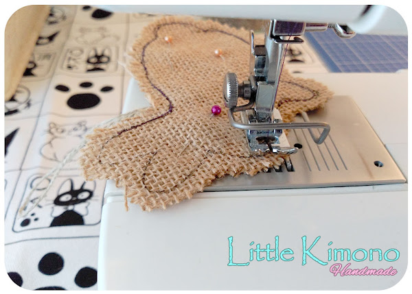 5. Empezamos a coser el saquito siguiendo el contorno de la silueta dibujada, dejando una pequeña abertura en la parte superior.