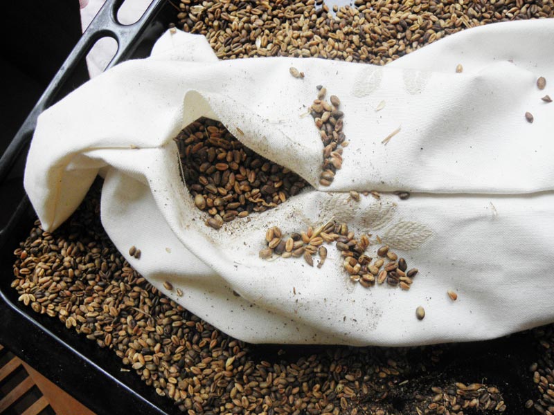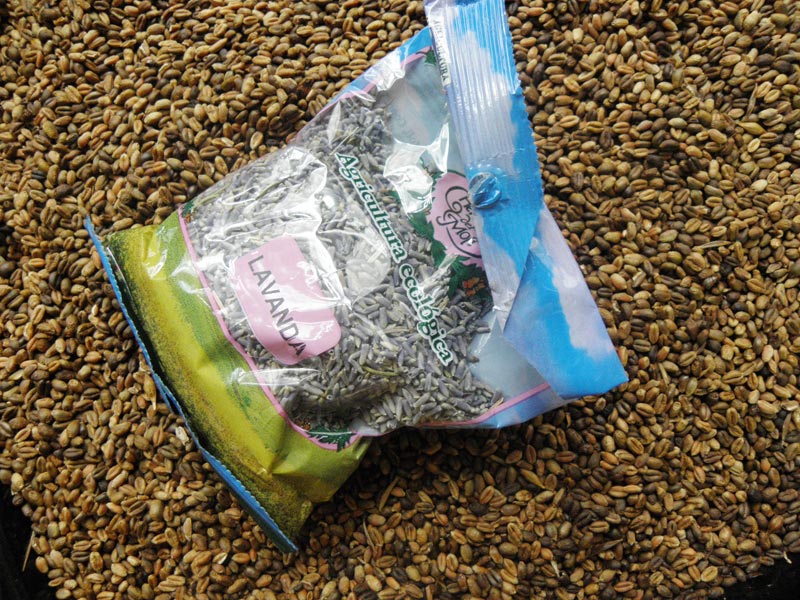 En una tienda de comida de animales compráis trigo para dar de comer a las gallinas, con un kilo ya tenéis de sobra. Lo metéis en el horno y lo asáis para "matar" a las semillas y que así no germinen. Lo colocáis en la bandeja bien esparcido y de vez en cuando lo removéis para que se doren por igual. Que conste que se pueden usar cualquier tipo de semillas.