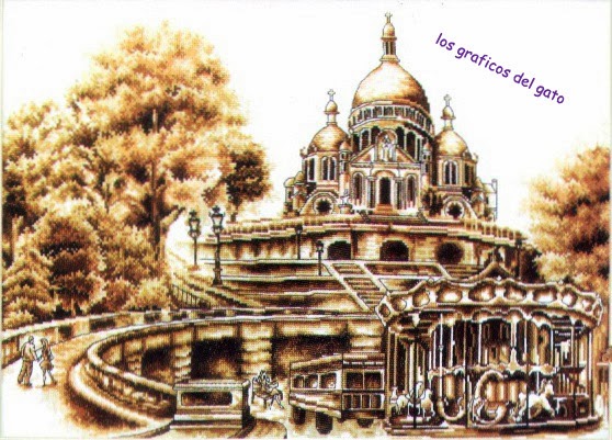 Precioso gráfico del Sacré Coeur en Montmartre, París...