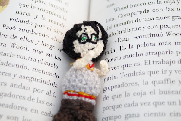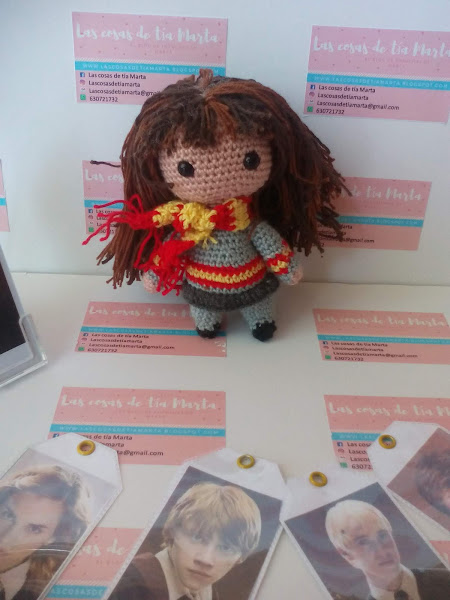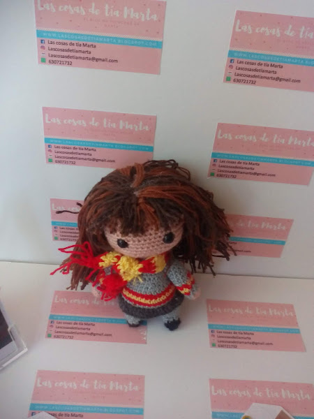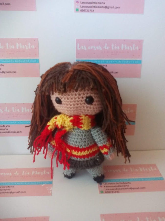 Por aquí os dejo mi aporte. Se trata de Hermione tejida en crochet. Acompaña a Harry en todas sus aventuras. Con ella he querido felicitar a Ana. ¡Muchas felicidades!
