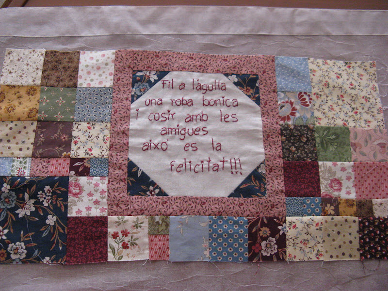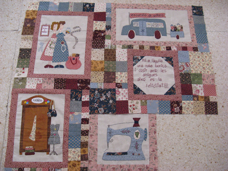 Encara que hem fa molta mandra cada vegada que tinc que començar un bloc; la veritat es que quan he arrancat m"hi diverteixo molt. Es d"aquel tipus de treball que tot i siguen una mica laboriós es molt agradable de fer i a més encara que siguem moltes que fem el mateix quilt, cada un sortira diferent i personalitzat.