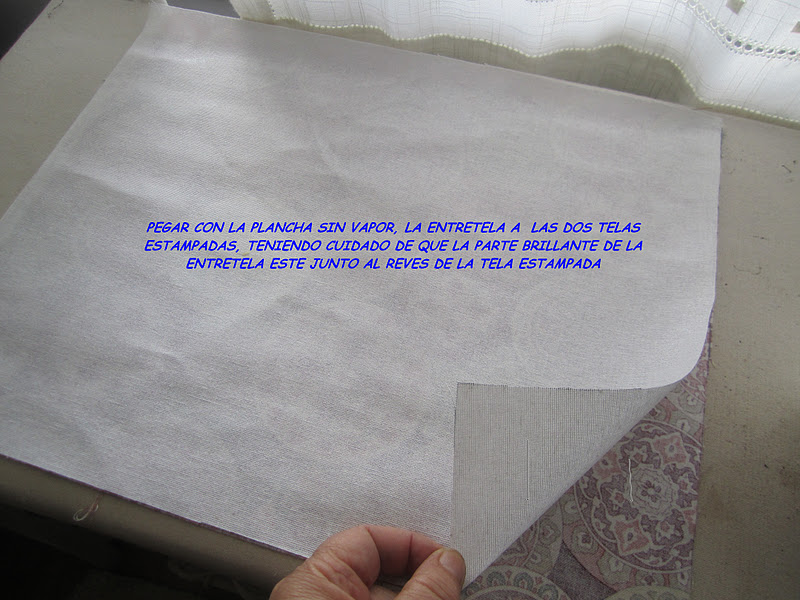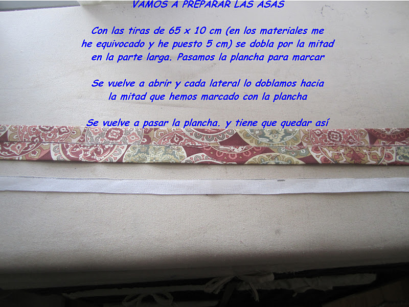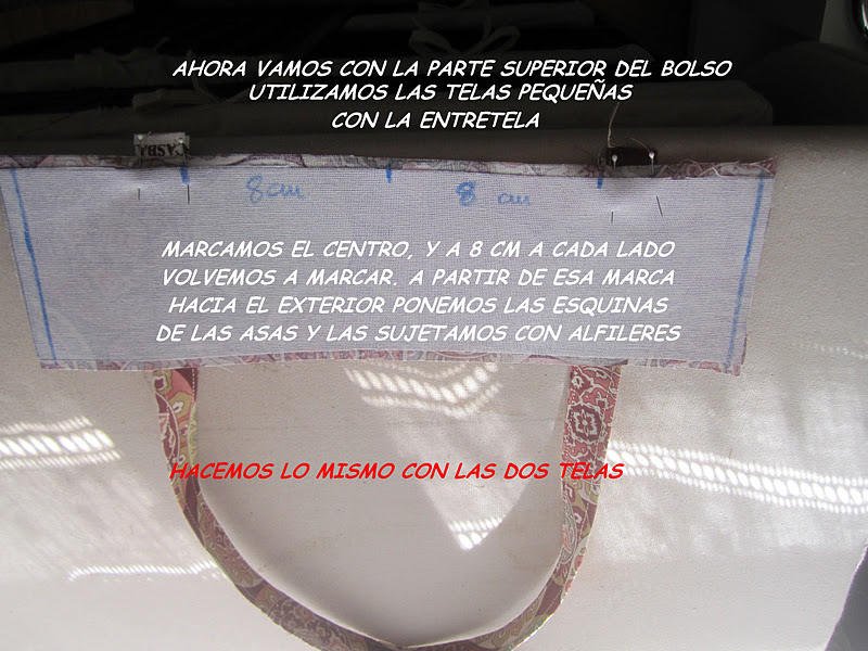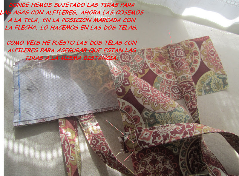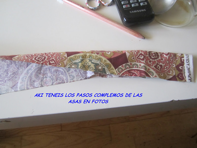 TODO ESTO POR LA PARTE DE LA TELA NOOOOO DE LA ENTRETELA, y volviendo a poner los dos rectángulos uno encima del otro quedaran las asas por dentro y las dos bien parejas.