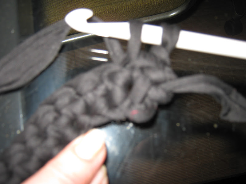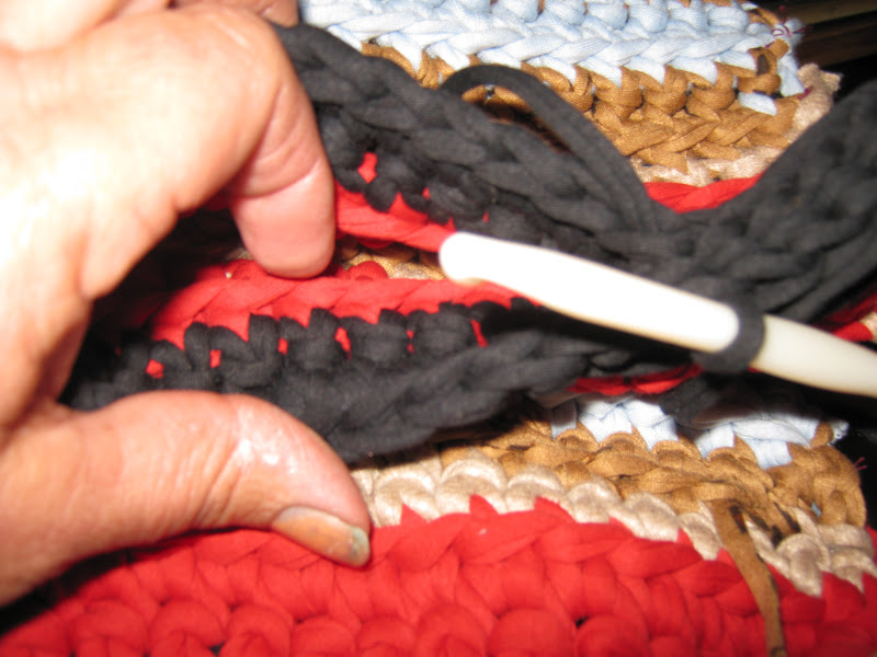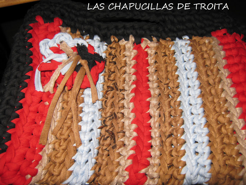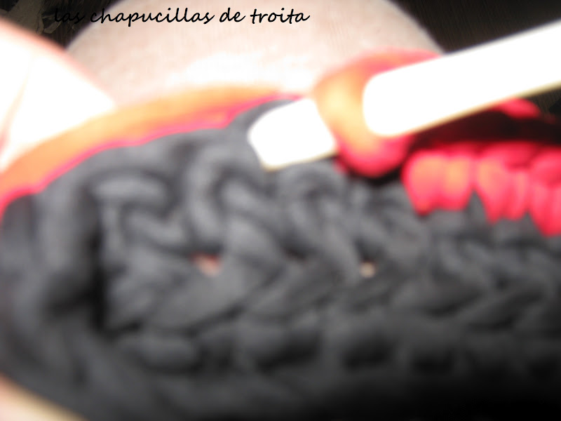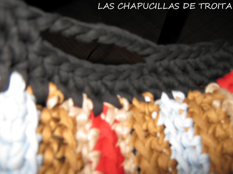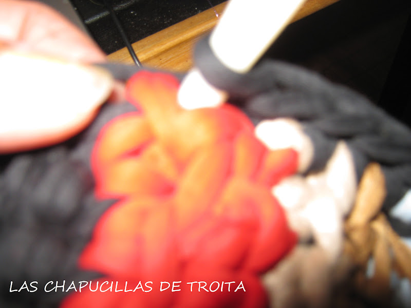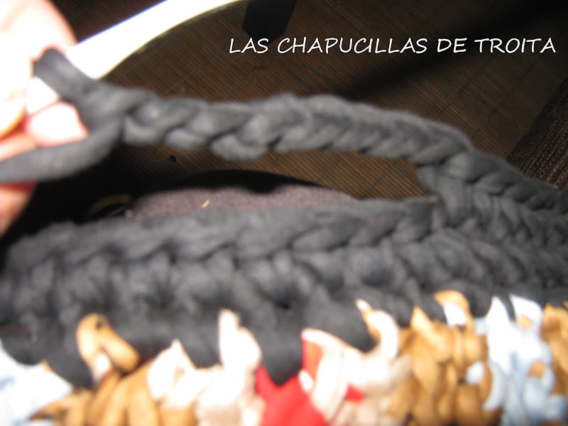Así dos vueltas y rematamos con punto de cadeneta todo alrededor , que también podeis rematar con lazo o trapillo enroscando , como si sobrehilaromos