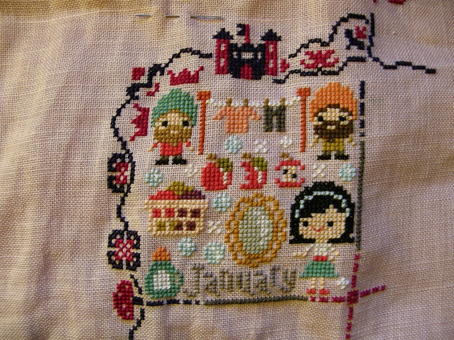 Mi primera parte del sal!!! al final me decidí a hacerlo en lino malva, le tenia un poquito de miedo a mis ojos...., el resultado precioso lleno de color, es chiquito pero tiene un hilito de cada color, parece que no avanzas pero ya esta terminado!!!!
